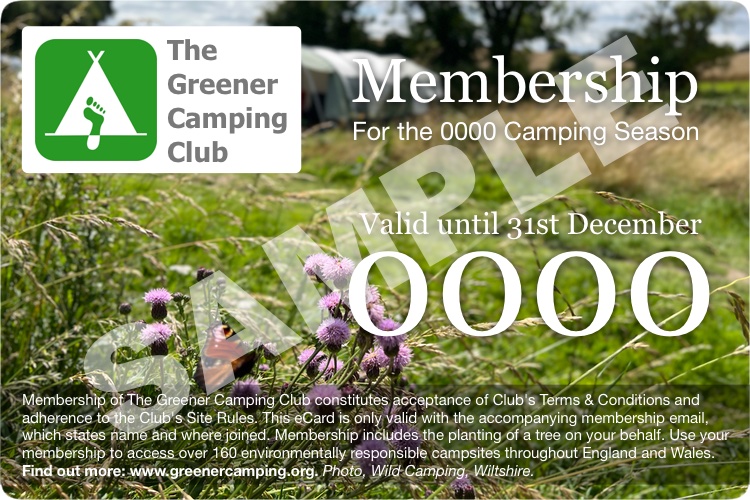 Greener Camping Club campsites are for members only. The membership fee is £12. One membership is required per family. The membership year runs from 1st January to 31st December. For campers who join on or after 1st September, membership is valid until 31st December of the following year.